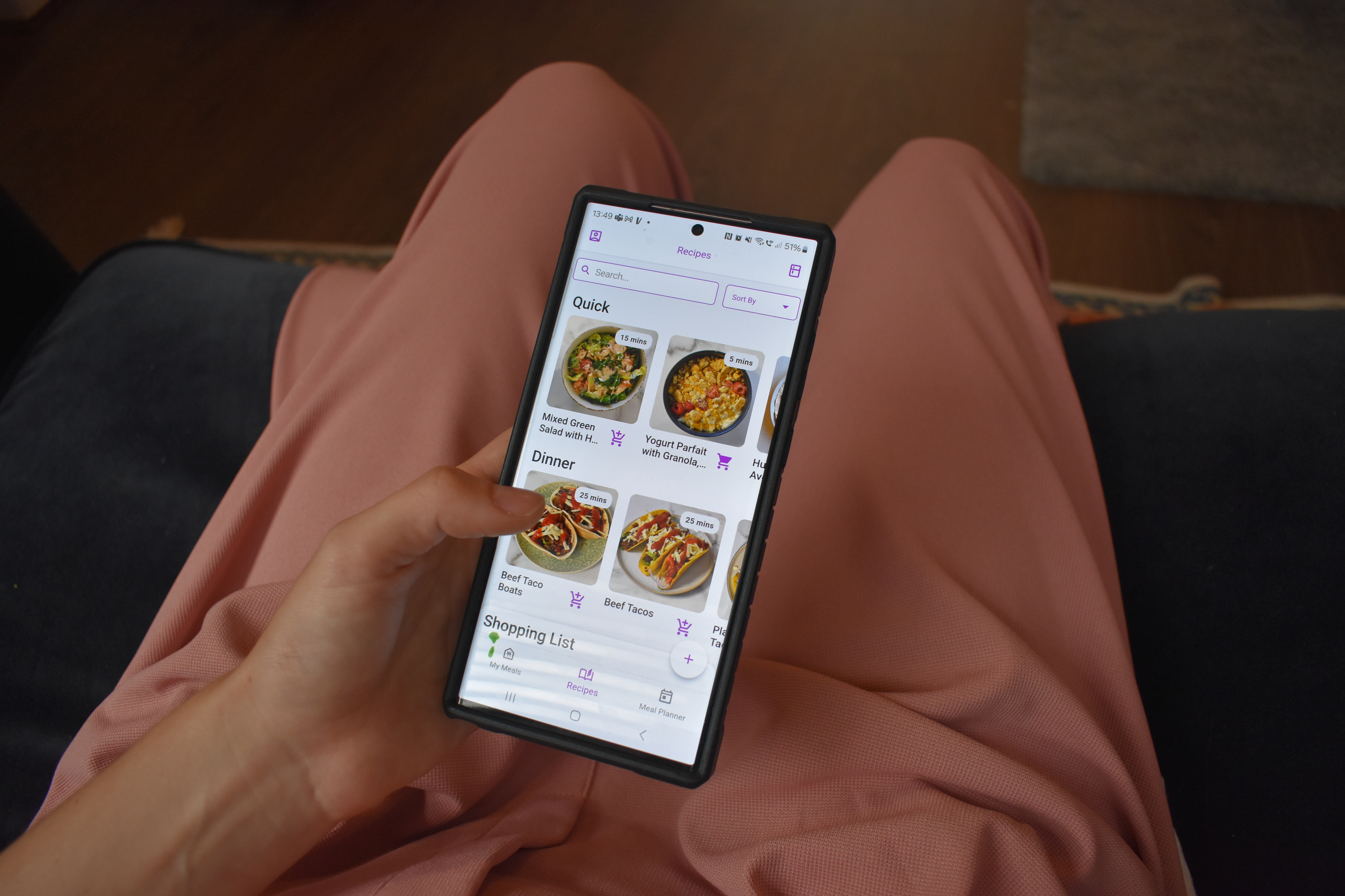 To easily find your favorite meals, start by creating your own digital cookbook. This is where you can save our recipes or add your own. To save recipes, use the search filter to explore various options. Once you find a recipe you like, open it and tap the menu to save it to your cookbook.